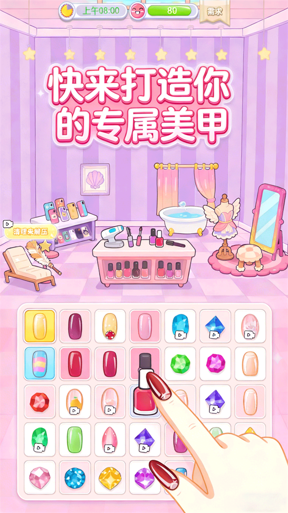 我要卸妆是少女心满满的美妆美甲模拟手游。开设专属美容院,为顾客打造精致妆容与创意美甲造型。使用高端美妆产品,按需求定制时尚美甲,轻松变身颜值达人。