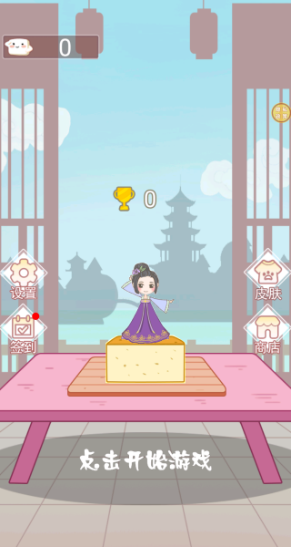 1、进入游戏后,你可以看到一个可爱的萌妹正站在豆腐上,点击开始游戏。