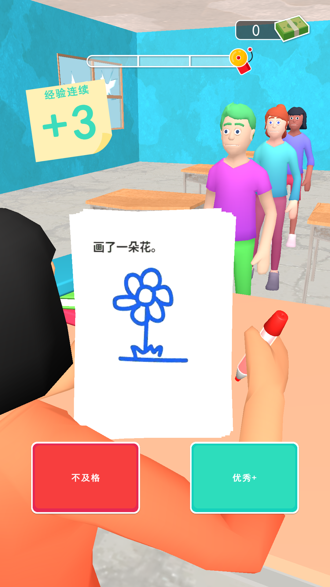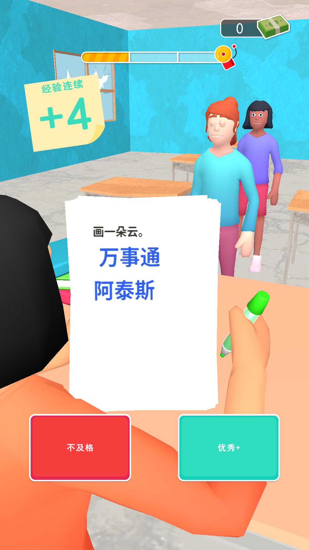 2、校园场景还原度高,搭配贴合情境的音效与视觉设计,从书写到等待批阅,全程营造紧张又欢乐的校园氛围。