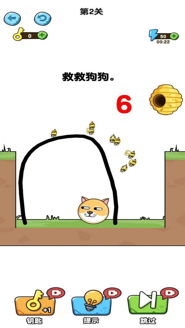 1、玩家需要操控手指绘制各种线条屏障,为憨态可掬的胖柴犬构建安全防护区,抵挡蜜蜂群的冲击。