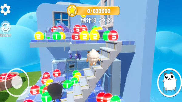 1、通过虚拟摇杆推动或触摸屏幕滑动,操控蛋蛋进行移动、跳跃、滚动、飞扑等。