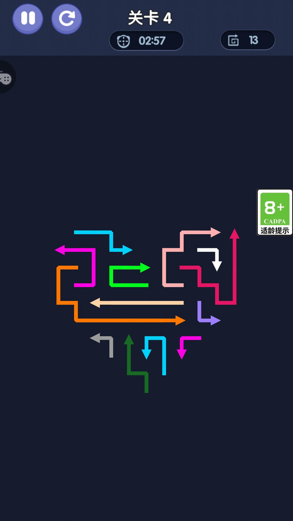 2、关卡设计拒绝重复,每一关都有全新的迷宫布局和箭头顺序,新鲜感拉满,根本停不下来。