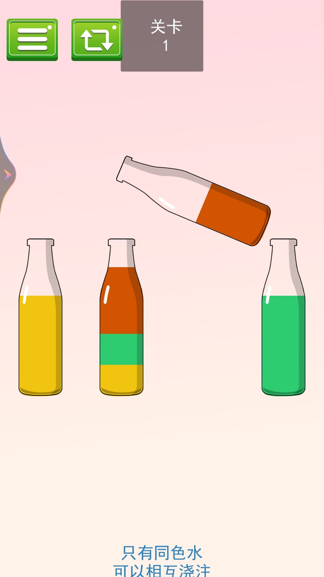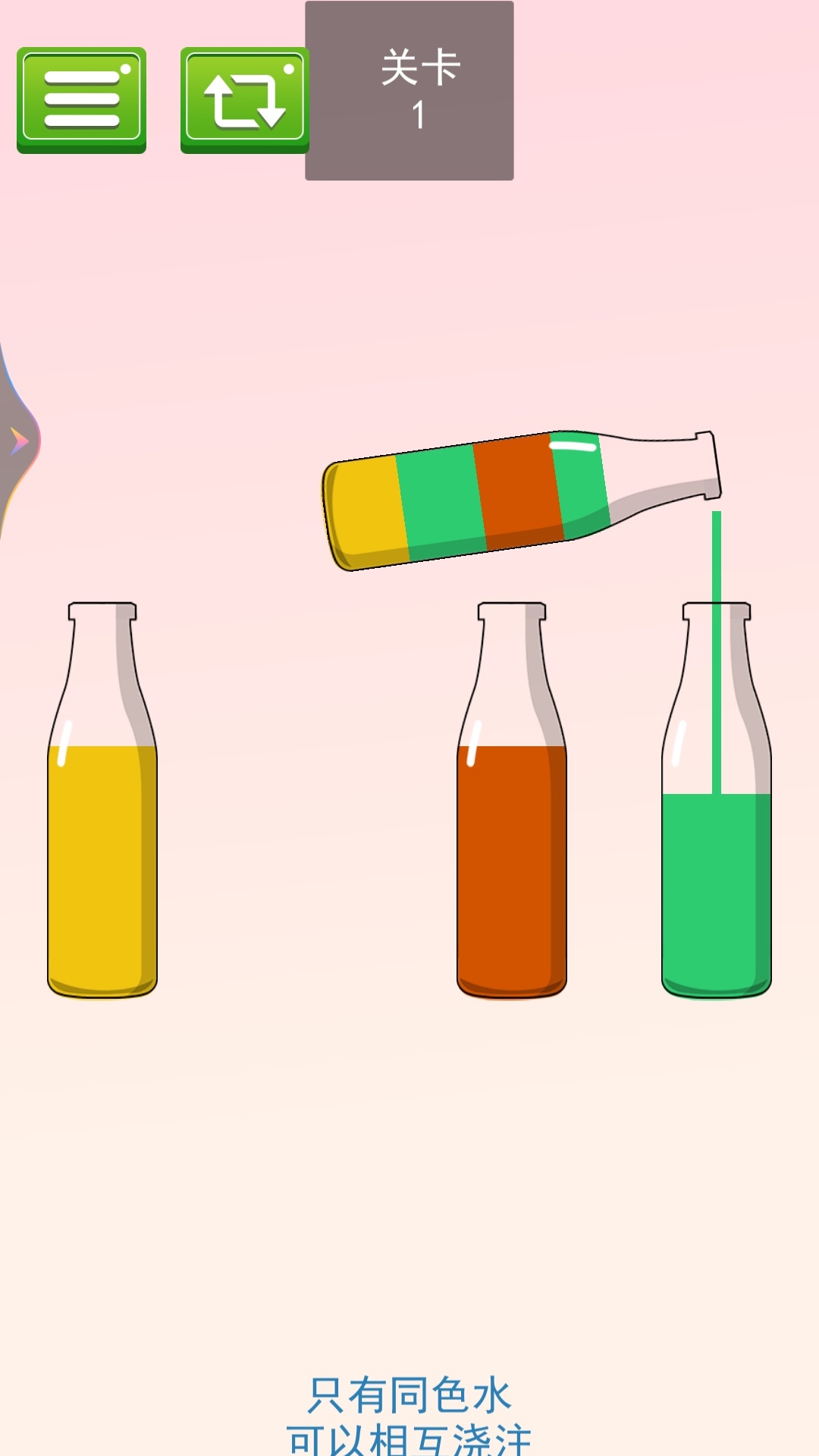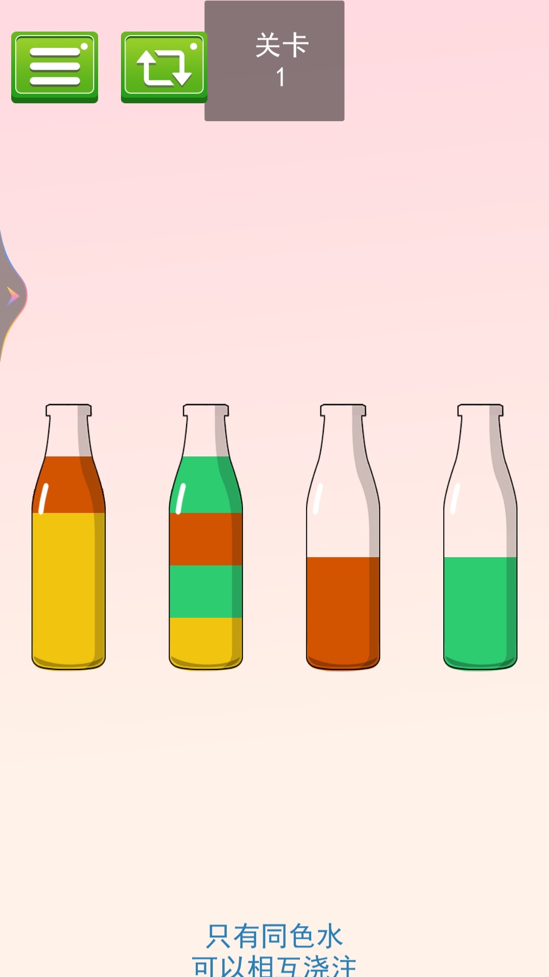 一起来排序是经典益智彩色液体排序手游。将瓶中不同颜色的液体分类整理,只有同色液体才能顺利融合。合理规划倒水顺序,利用有限容器完成分类挑战。关卡烧脑有趣,轻松锻炼逻辑思维,休闲解压必备。