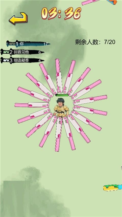2、不断收集刀具,靠近一个敌人就可以自动战斗,远离刀具比自己多的敌人。