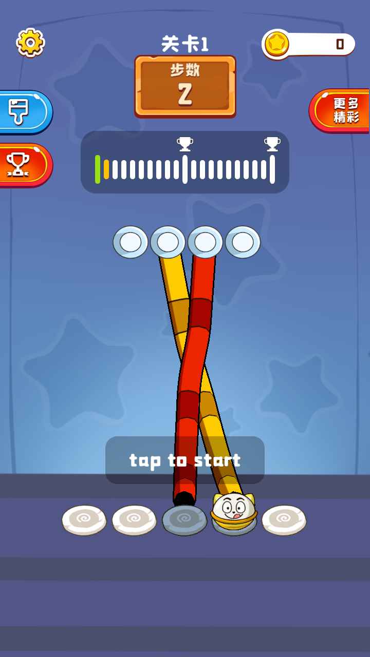 1、这是一款非常考验玩家智力和耐心的游戏,犬牙交错的彩绳会让你心烦意乱,一定要去耐心的对待。