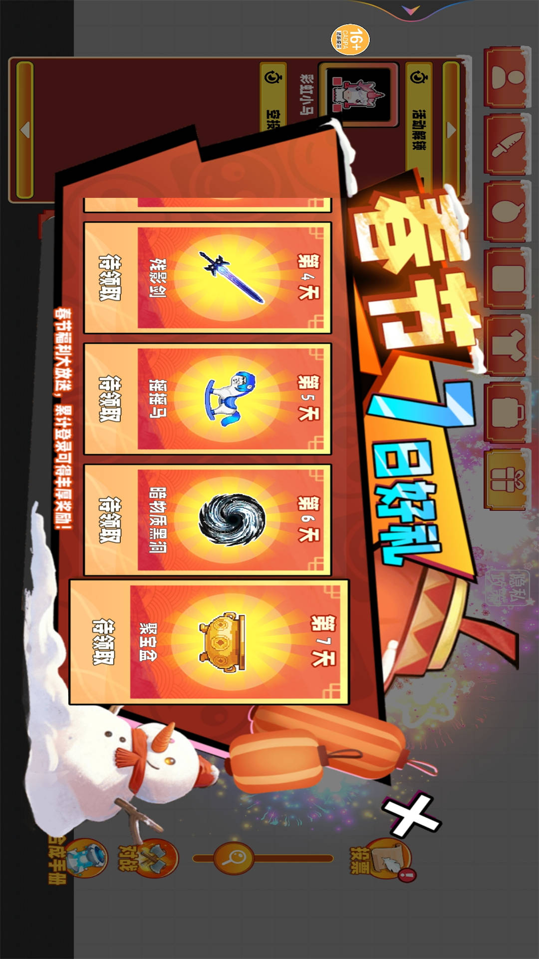 3、七日登录福利丰厚,稀有道具助力前期冒险进程。