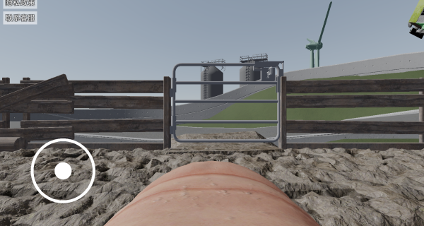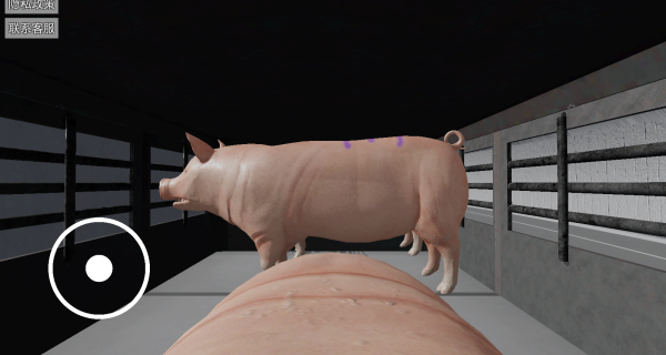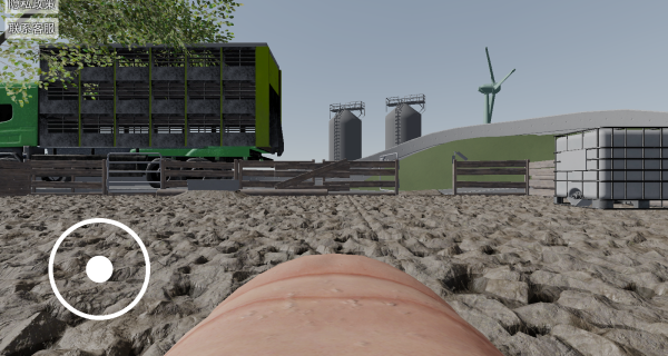 2、猪圈只有那么大,你可以在这里自由探索,同时观察外面的大卡车。