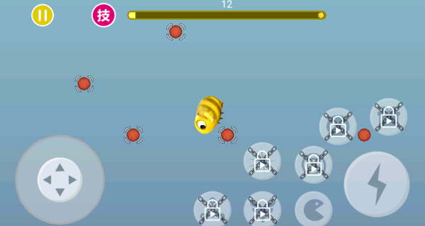 1、进入游戏后,你可以利用虚拟摇杆操控着小蜜蜂在海底吞噬。