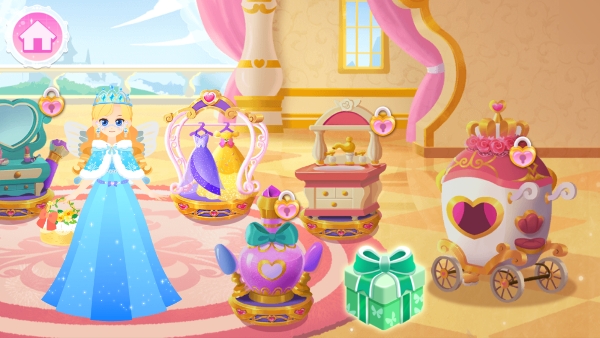 2、点击衣柜为公主换上新衣服,或者点击梳妆柜为她化妆,打造完美造型。