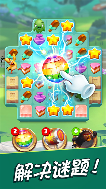 愤怒的小鸟消消乐游戏带着独特的挑战,挑战一大堆有趣、可爱、随意的谜题。打败小猪,清理泥土,收集甜食等等!