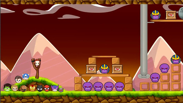 --将超级英雄弹射出去,击中关卡中的紫色灭霸,消灭所有灭霸即可顺利通关。