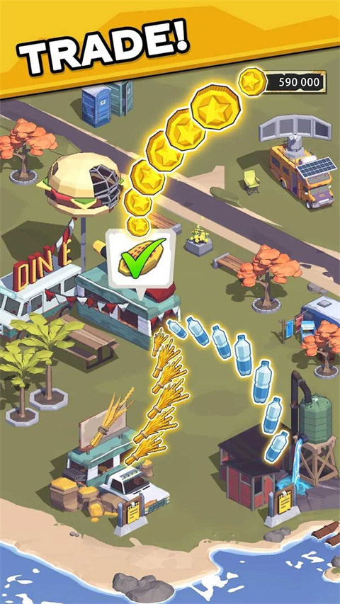 3、建造商店和工厂,生产材料。接受订单,通过交易赚取金币和小镇经验。别忘了运送物资,解锁码头,立即派船出海!