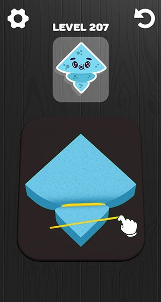 1、打开海绵艺术安卓版,进入游戏主界面,根据上方图案的样子,用手指滑动海绵,来改变形状,