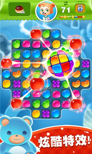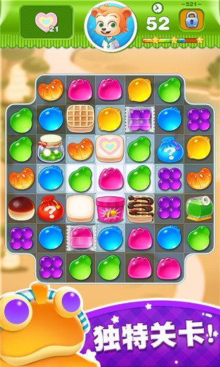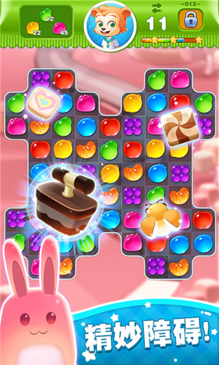 1、极致Q萌视觉设计: 采用高饱和度的甜点主题色彩,角色与糖果建模圆润可爱,配合灵动的消除动画,为玩家带来治愈感十足的视觉享受。