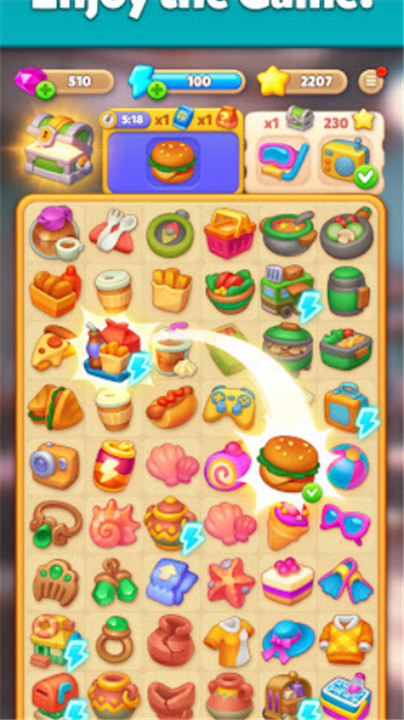 3、点击带有“闪电”图标的物品即可获得多个小道具,如下图所示: