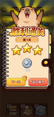 3、完成初关卡任务,获得顾客好评,就可以授予三颗星的奖励,并获得100个银币,然后就点击下一关。