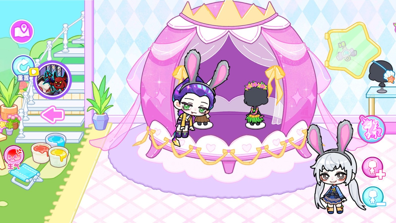 1、将换装装扮与世界搭建融合,既可以随心搭配海量萌趣服饰也能自由打造小镇场景,双重创意玩法满足创作需求。