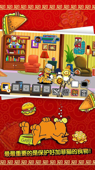 用饼干来给你的加菲猫升级,也可以升级技能、队友、家具等等任何你想要的。武装自己,使战斗力成倍增长,最终把家变成超级食物战场,外星人什么的根本就是小菜一碟,甚至连我们要保卫的冰箱都可以升级,外星人快来吧,打不过我你也带不走属于我的冰箱。