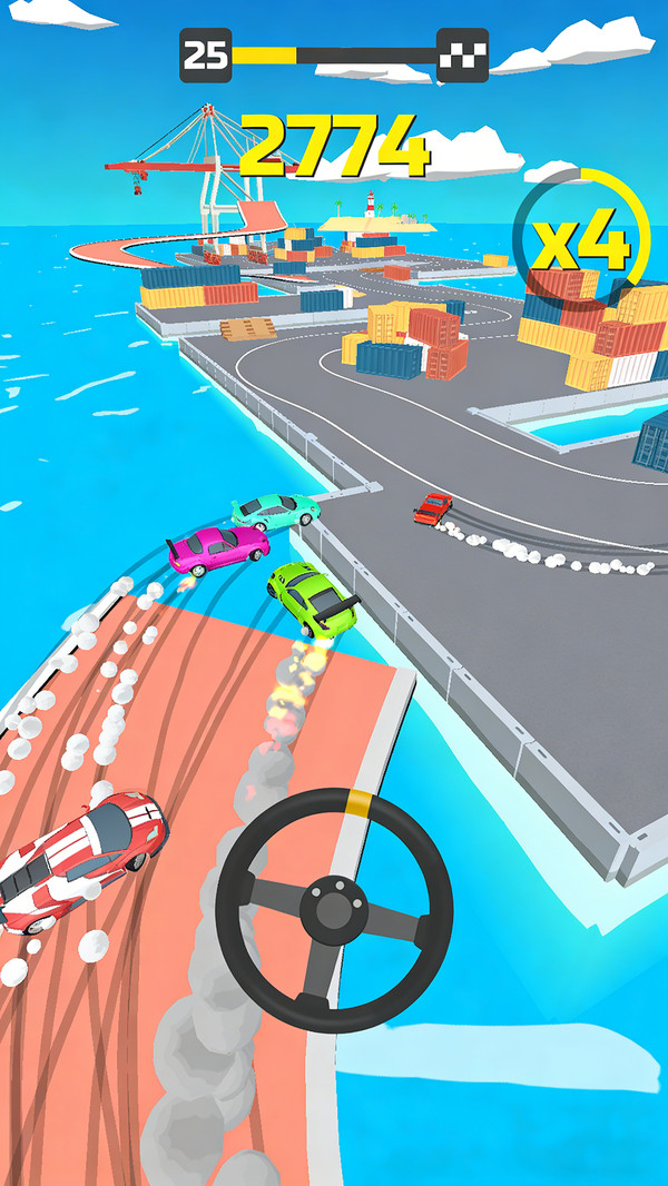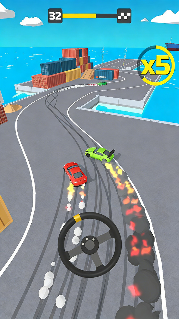 1、方向盘一划车就动,但想漂得帅还得练两下,越玩越有意思。