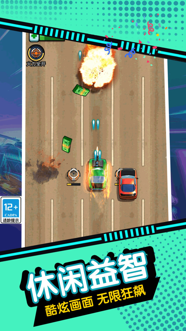 1、战斗节奏紧凑刺激、将射击元素深度融入竞速流程,空中交火与地面追逐无缝衔接,让玩家时刻处于高度紧张的激战氛围中。