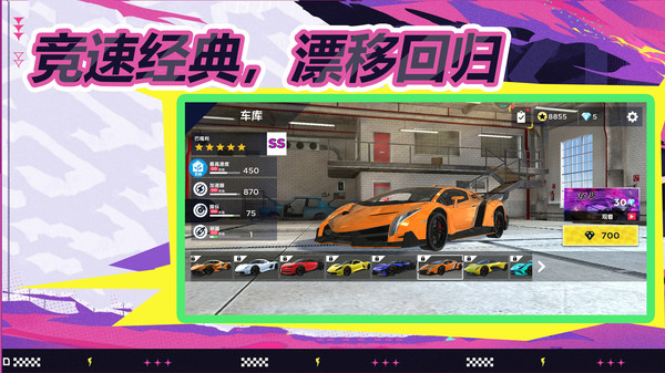 爽到飞起的双指漂移技术,让每个弯道都变成超级大秀场,加速漂移氮气升级,最帅的漂移姿势由你打造