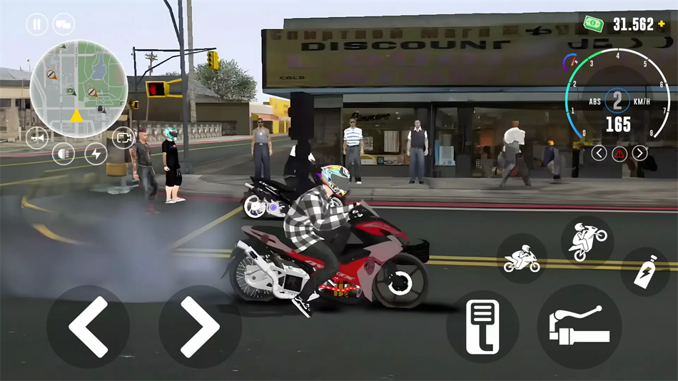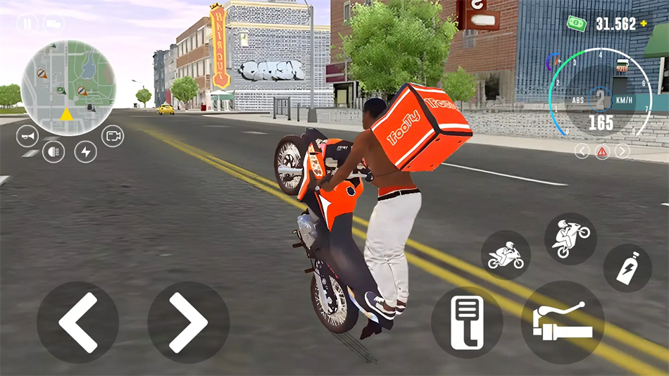 4、长按右下角油门按钮让摩托车加速前进,提升速度冲刺。