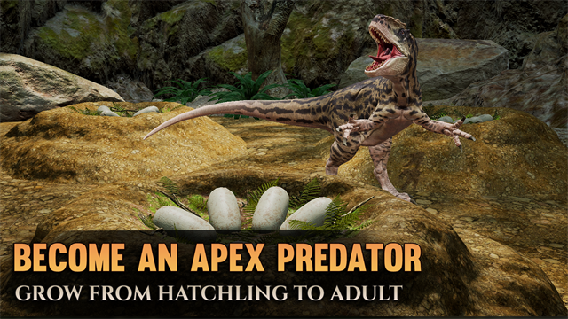 通过完成任务和杀死其他人,以幼崽的身份开始生活并成长为成年。增强力量和力量以应对更大的生物和更大的挑战。当你在世界上留下自己的印记时,看着你的恐龙无缝地长出它们的角、板、刺和牙齿!