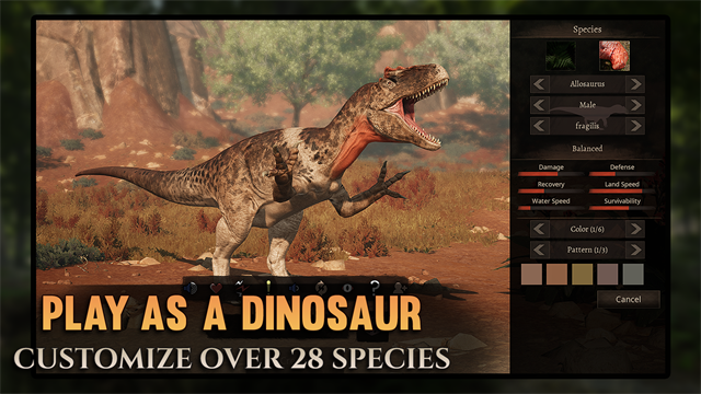 每个恐龙物种都具有独特的能力和技能,使其能够在生态系统中开辟出一片天地。食肉动物可以成群结队地捕猎更大的恐龙,而食草动物必须通过成群结队来保护自己和他们的食物来源。无论你是钓鱼的棘龙还是冲锋的始三角龙,都要充分利用你的能力求生!