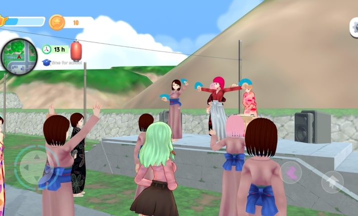 2、沉浸校园探索:樱花的学校里有体育馆、咖啡店、教室等多样场景。