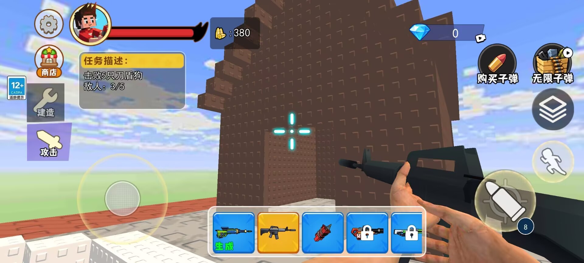 水方块生存100天以海上漂浮小岛为背景,玩家需在危机四伏的环境中求生。面对随机出没的刀盾狗与大企鹅等敌人,利用武器击杀即可获取食物资源。本站助你轻松掌握生存技巧,开启挑战之旅。