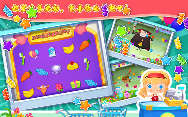 7、糖糖超市游戏中的爱心可以换取玩家喜欢的成就勋章,并在入口处的墙上展示。
