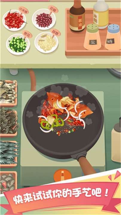 4、升级系统,随着游戏进程,玩家可以解锁新的食谱和道具,不断提升排档的营业水平,扩大经营规模。