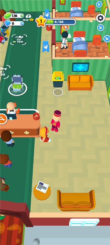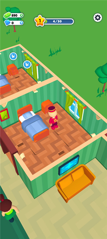 3、安排好房间给客人,他们住完后,需要及时清理打扫,才可以继续接待客人,移动小人靠近待清理的地方,就可以自动清理了。