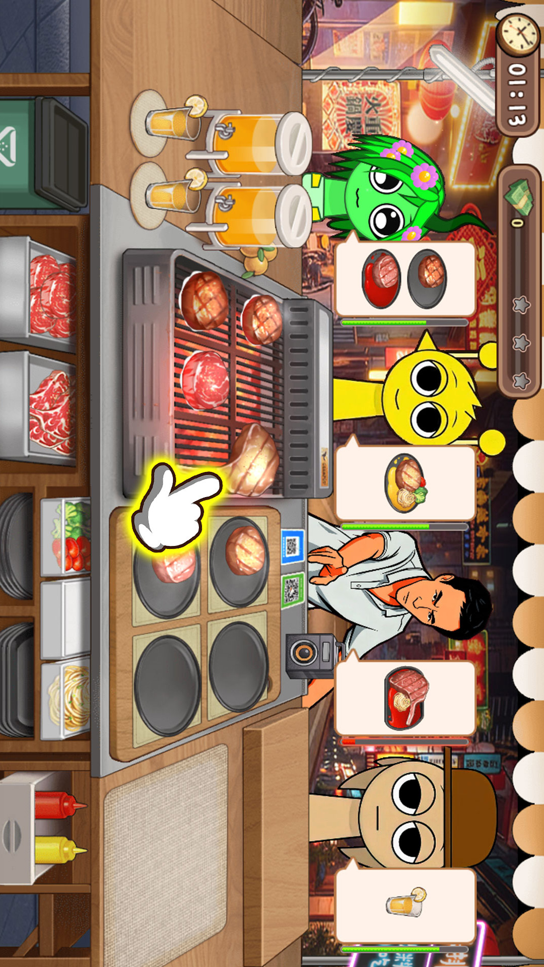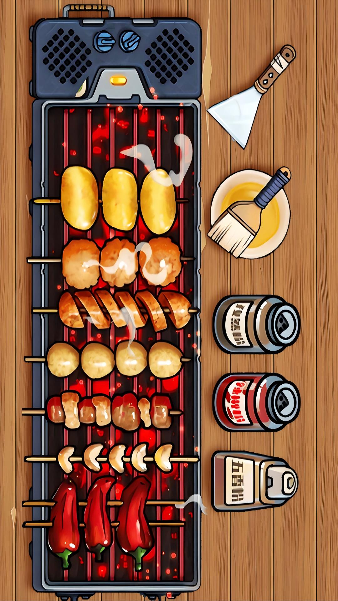 3、用盈利逐步升级烤具与店铺,解锁更多食材丰富烧烤的品类。