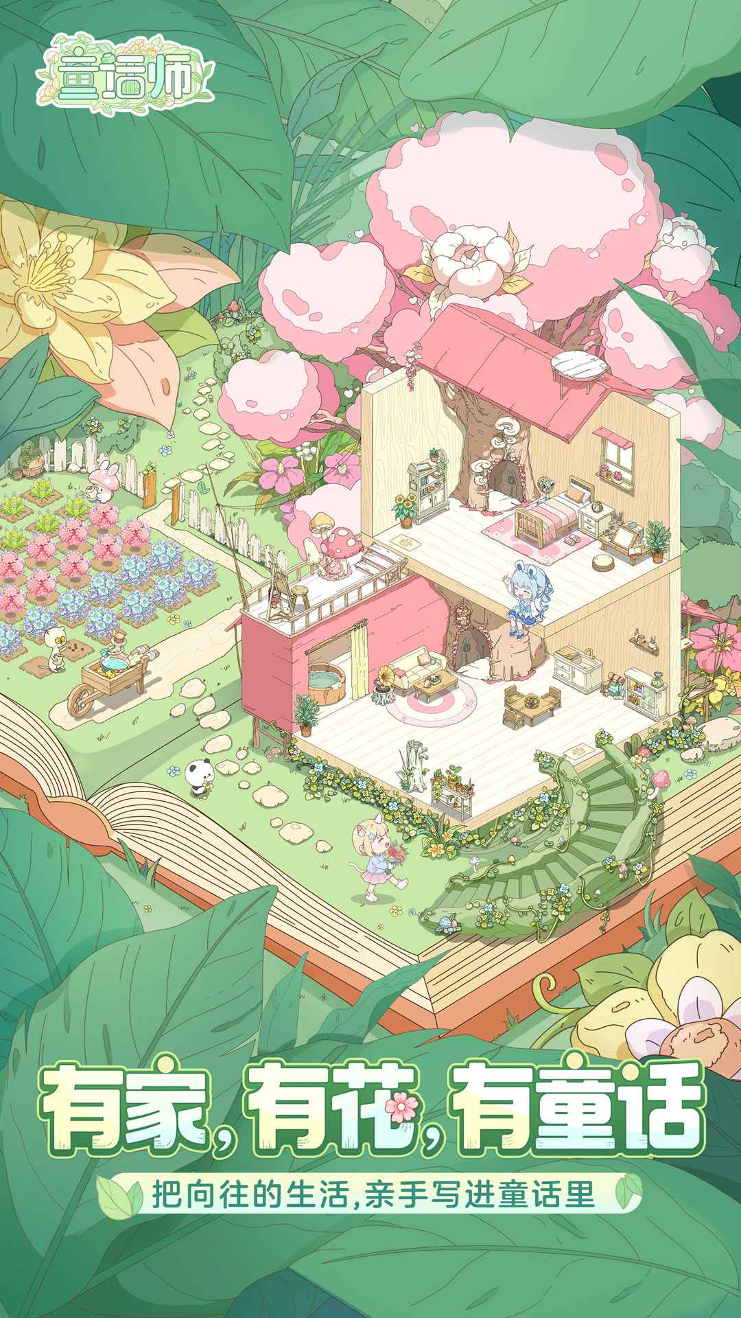 2、自由设计童话小屋和花园,室内外装饰搭配丰富。