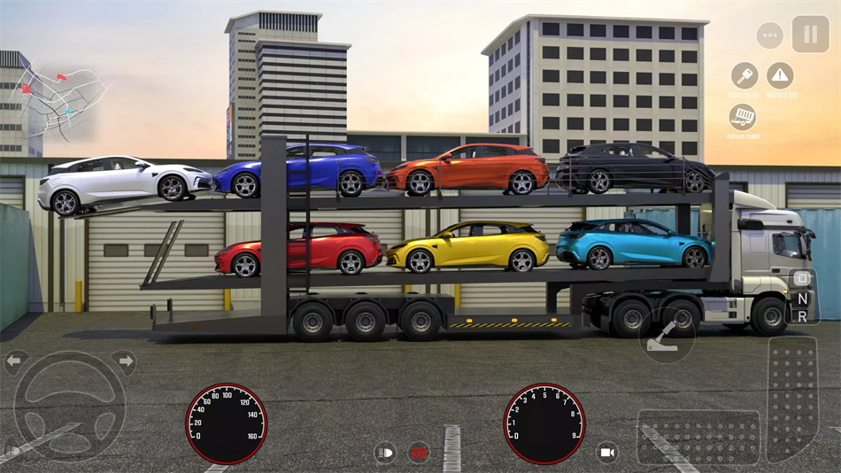 1、真实物理引擎:半挂车甩尾、坡道起步等操作需结合离合器与档位控制。