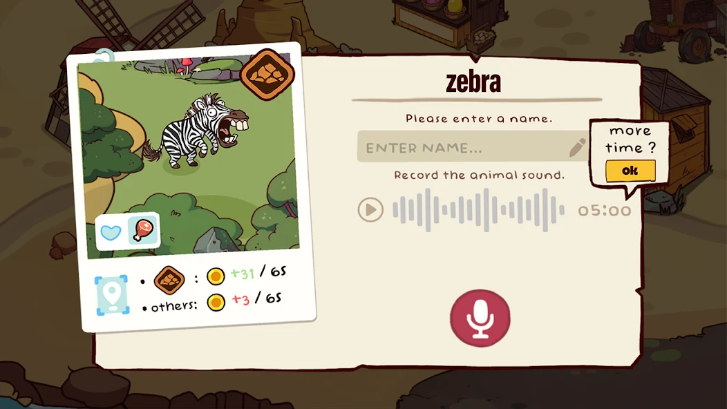 1、进入游戏后优先录制基础声音,为初始动物赋予个性以提升互动体验。