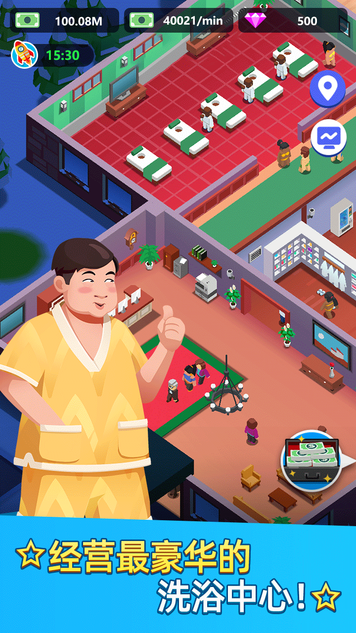 洗浴中心大亨是一款休闲趣味的模拟经营手游,玩家从零起步经营专属洗浴门店,逐步拓展多元服务项目,完善运营管理体系,持续扩大经营规模。游戏融入员工培养与服务升级等丰富玩法,合理规划经营策略,稳步提升门店营收与人气,沉浸式体验开店致富的经营乐趣。