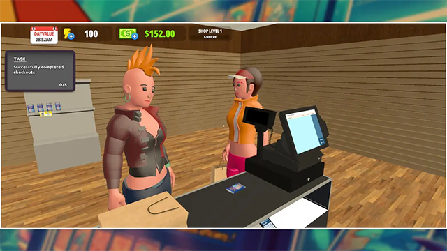 不仅是简单的买卖,玩家需要负责收银、清洁甚至驱赶店内异味,极高还原了经营实体卡牌店的琐碎与乐趣。