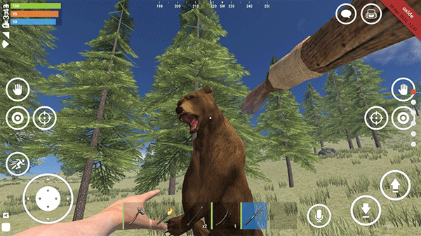 2.首日需狩猎野猪、鹿等温和动物获取生肉,用木头搭建营火烤制后食用。