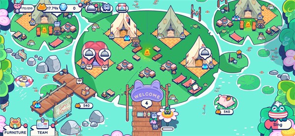 1、扮演小青蛙Aaron,在宁静池塘打造温馨豪华露营地,体验轻松佛系经营。