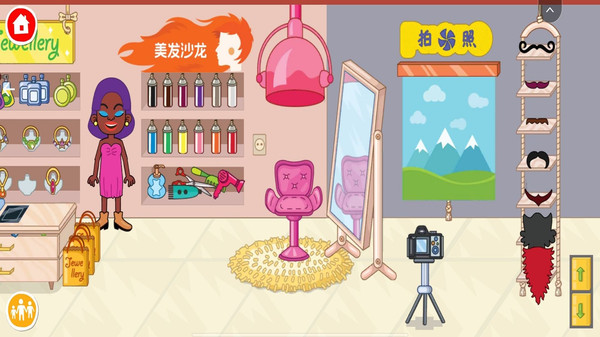 场景内容涵盖家、学校、商场、医院、游乐园、海底世界、太空站等数十个可互动场景,每个场景都有独特道具与功能,如商场可购物换装、医院可扮演医生治病、游乐园可启动游乐设施。