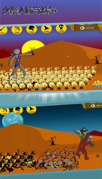 3、不仅需要布置防线,还需实时指挥火柴人英雄进行战斗。