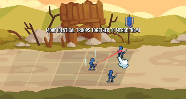 3、在备战的时候,我们可以点击两个相同的士兵去进行合并,去解锁一个更高等级的士兵的。