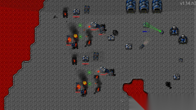 操作:先建基地核心、电厂、金属提取器,再解锁陆军工厂 / 空军基地 / 海军船坞,测试各兵种攻击 / 防御 / 移动属性。