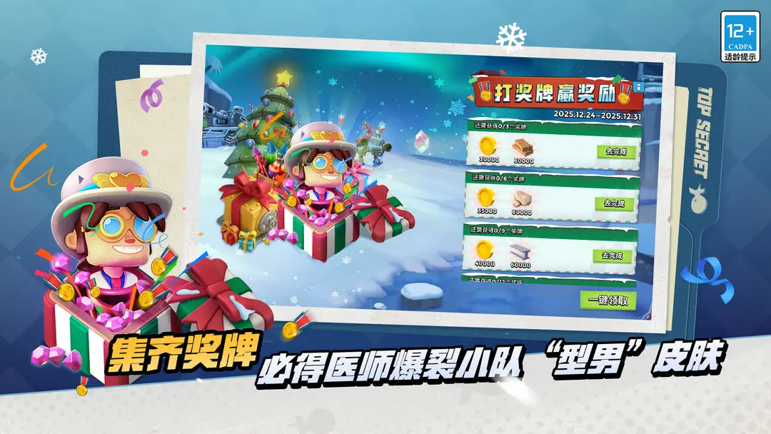 1、打奖牌赢医师爆裂小队“型男”皮肤