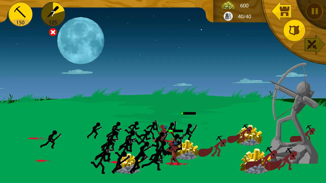 剑士关卡,前期养6个矿工,剑士来了就驻守,经济上来了优先养弓箭手(3个起步)