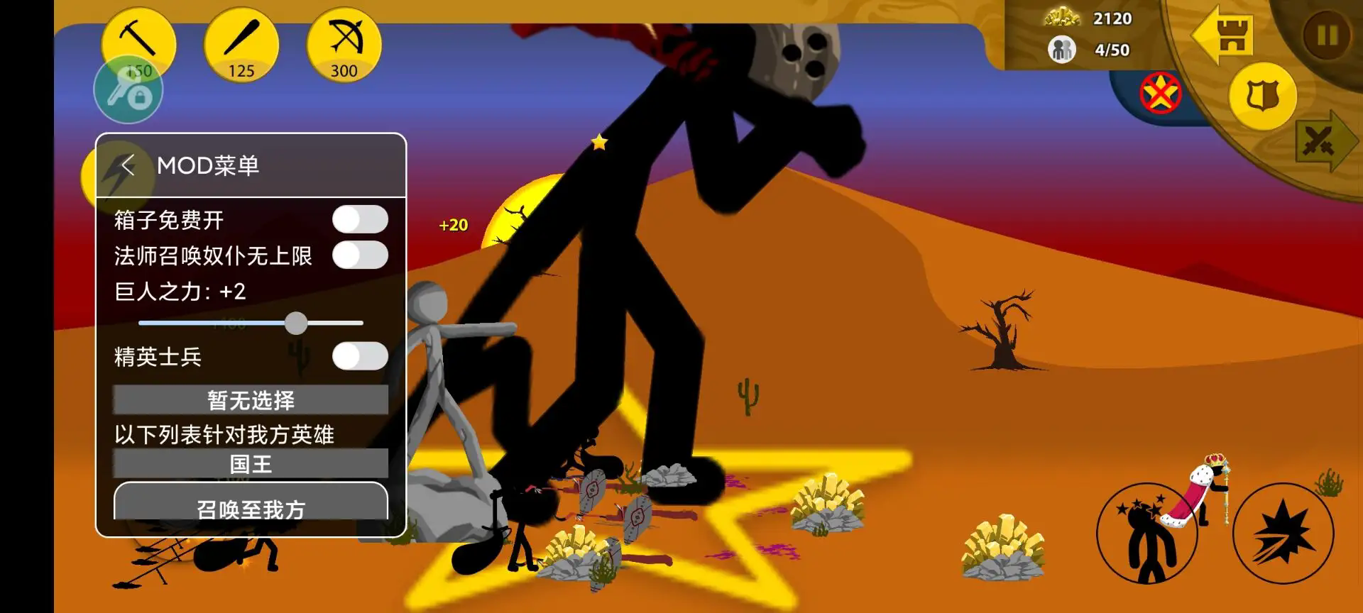 火柴人战争遗产3绿色钥匙版为用户们解锁大量资源,可以通过游戏内的绿色钥匙调用菜单功能,比如实现免费开箱、士兵生成、免CD、无限宝石等等功能,大家可以尽情指挥火柴人大军完成接下来的一系列战斗,让你专注于模式上的体验,而非局限于资源的匮乏。