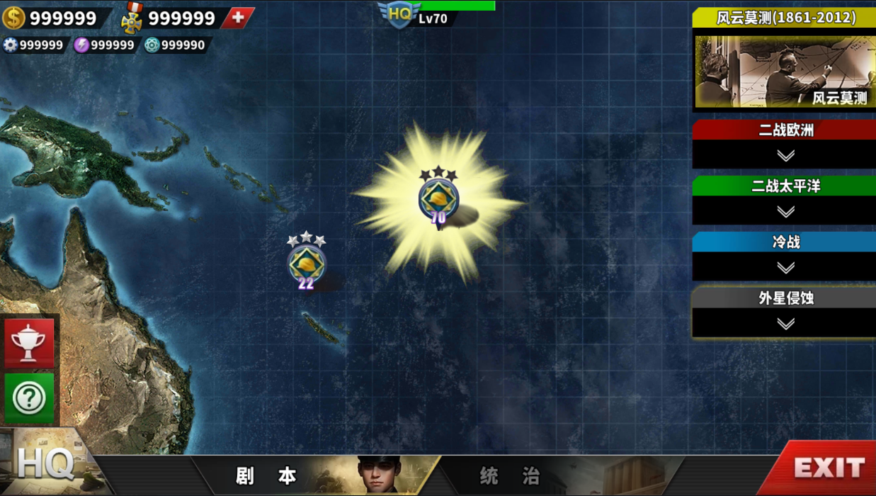 1.剧本战役分为四大板块:二战欧洲、二战太平洋、冷战、现代战争。其中二战欧洲分为轴心国(11关,以德、意为主)与同盟国(11关,以苏、英、美为主);二战太平洋分为轴心国(9关,以日本为主)与同盟国(9关,以美国为主);冷战分为华约、北约各6关;现代战争围绕联合国军队对抗恐怖组织展开,目前开放9关,涉及多个世界大国。