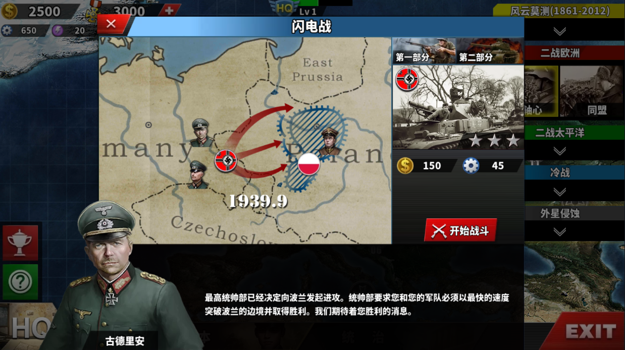 2.掌握以上科技,足以顺利通关二战欧洲系列及各类挑战关卡;等级达到20级后,可开始采购高级单位,参与演习与传奇将领任务,任务中尽量减少兵力伤亡。
